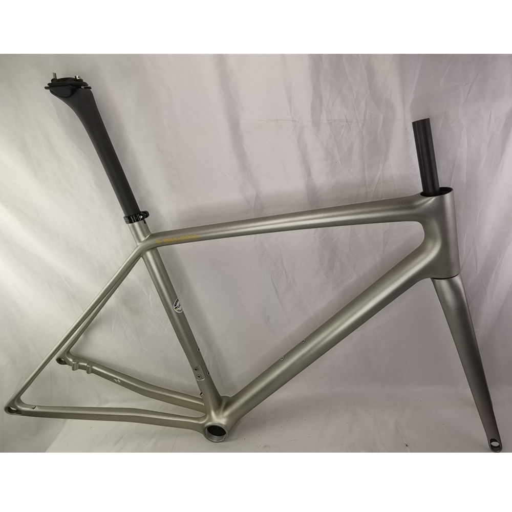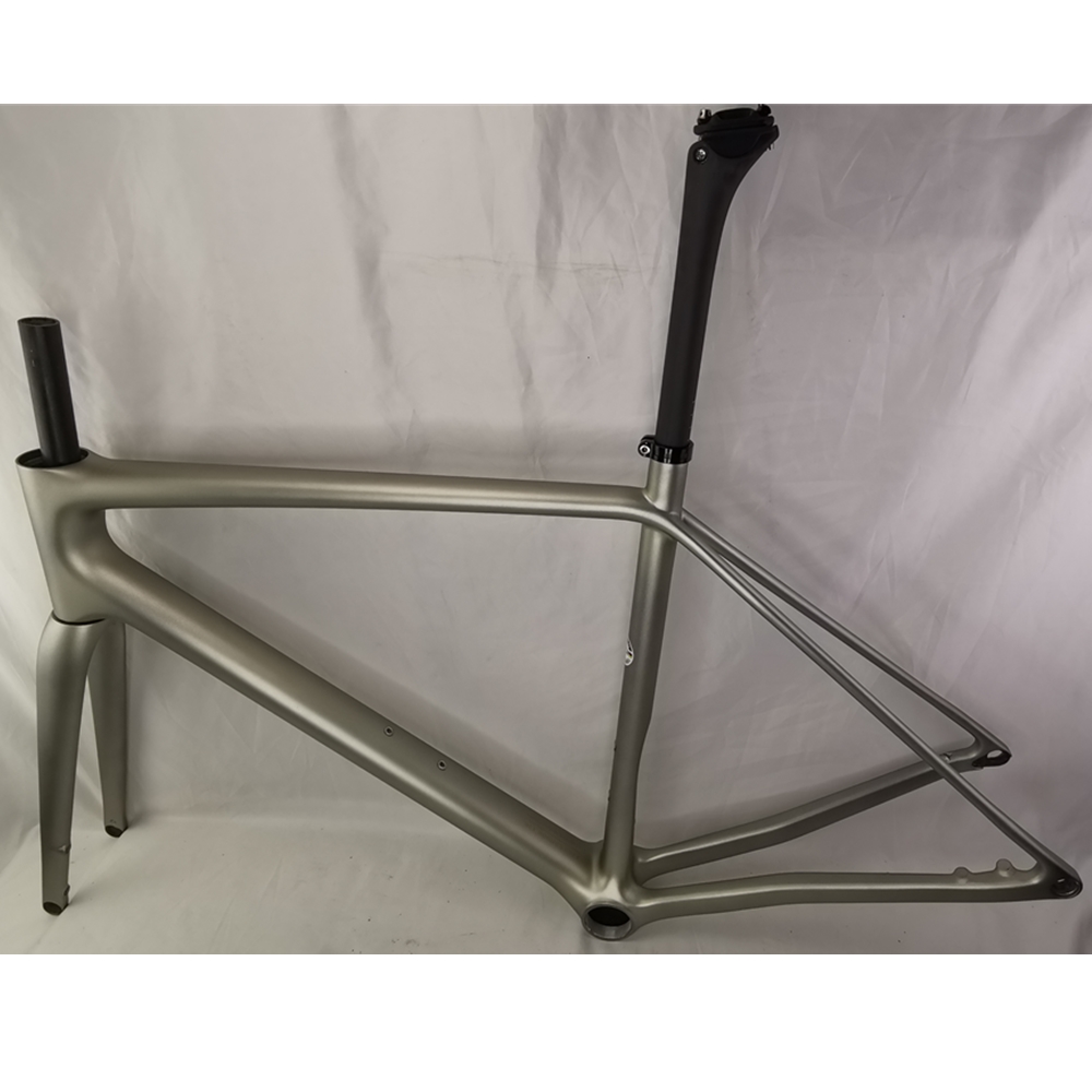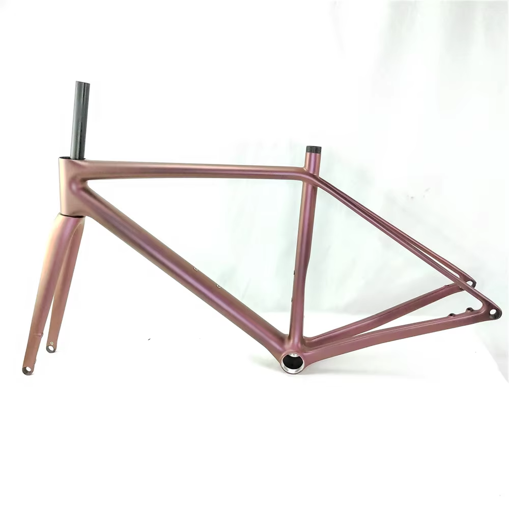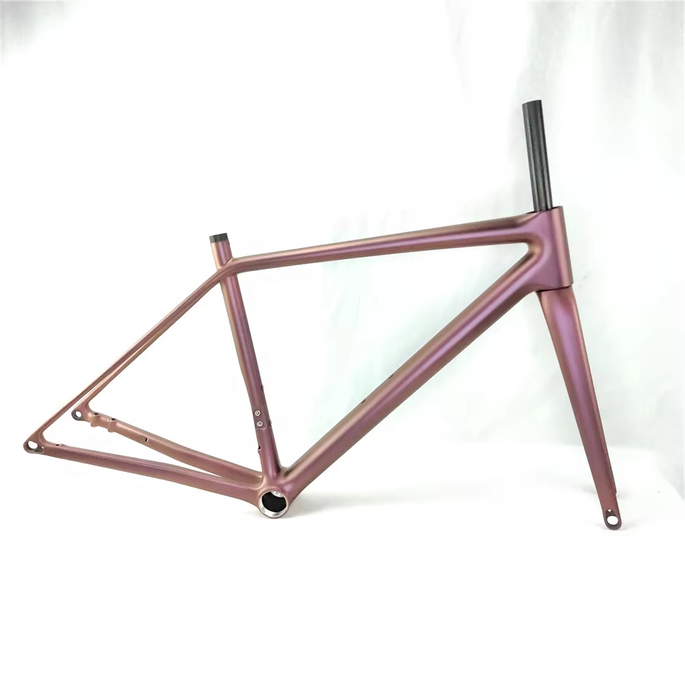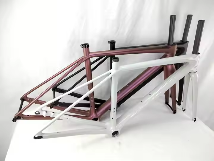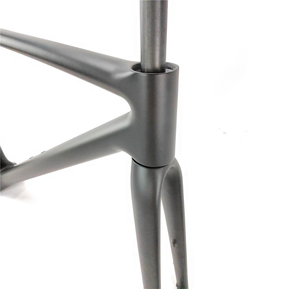 SpecificationitemvalueFoldableNOSize45/49/52/54/56/58/61cmUseRoad BicyclesWeight649g on 45cm Model 1 Internal CablesPlace of OriginChinaGuangdongSurface Processing ModeMatteTypeCarbon fiber frameMaterialT1000 Carbon FiberColorBlack / Pink/ White, Or OEM Your Brand Logo ColorBottom BracketT47 ThreadedHeadsetModel 1: Top:1-1/2'' Down:1-1/2'' For Internal CablesModel 2: Top:1-1/8'' Down:1-1/2'' For External CablesFrame Size45cm / 49cm / 50cm / 52cm / 54cm / 58cm / 61cmWheel size700C*28cHead TubeModel 1: 52*52mm Model 2: 48mm*52mmBrake TypeDisc BarkeMOQ1 PieceMax Tire size700c*28mmPacking & Delivery![]()