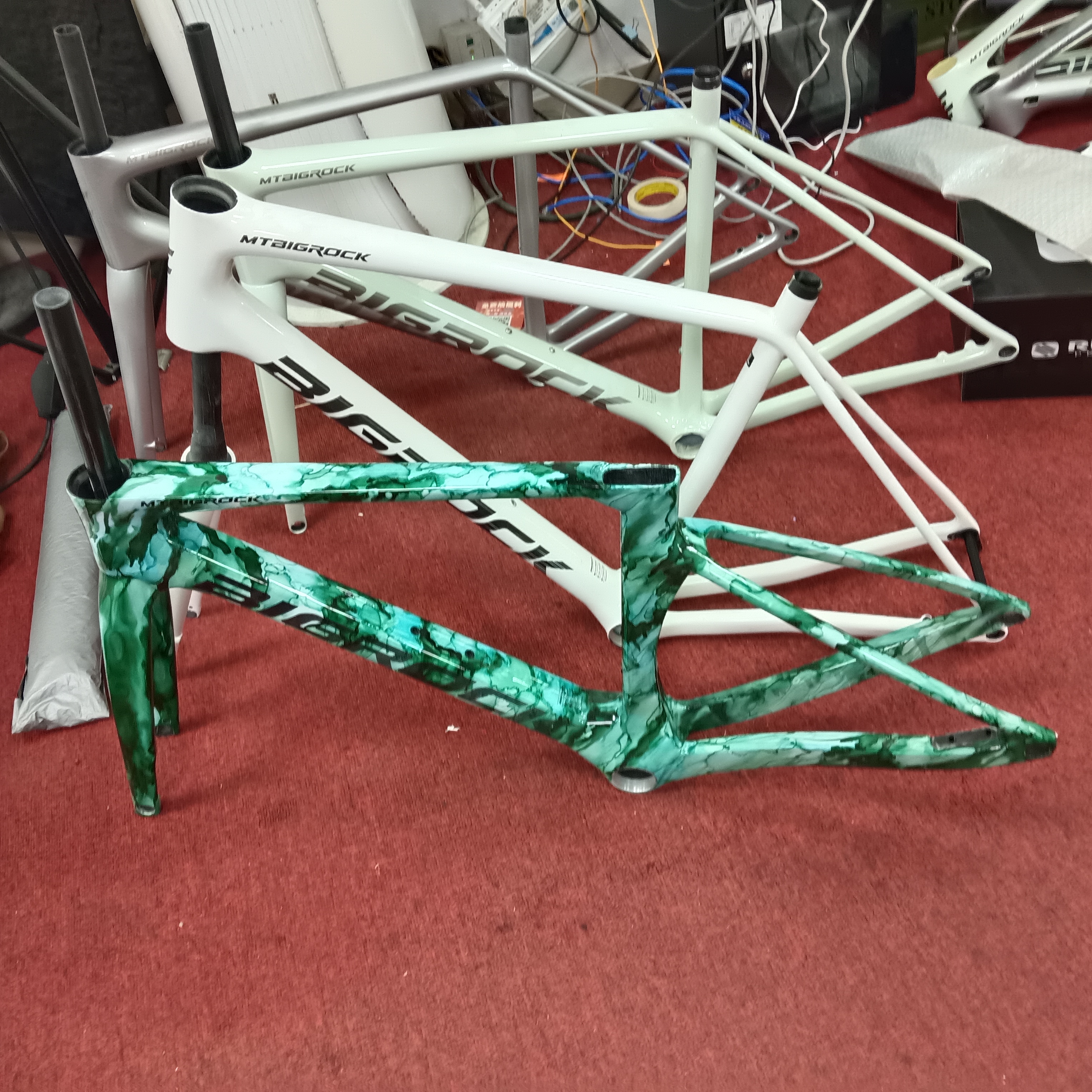 Product DescriptionSpecificationitemvalueFoldableNOSize49/52/54/56/58cmUseRoad BicyclesWeight820g on 52cm Model 1 Internal CablesPlace of OriginChinaGuangdongSurface Processing ModeMatteTypeCarbon fiber frameMaterialT1000 Carbon FiberColorBlack / Pink/ White, Or OEM Your Brand Logo ColorBottom BracketT47 ThreadedHeadsetModel 1: Top:1-1/2'' Down:1-1/2'' For Internal CablesFrame Size49cm / 50cm / 52cm / 54cm / 58cmWheel size700C*30cHead TubeModel 1: 52*52mmBrake TypeDisc BarkeMOQ1 PieceMax Tire size700c*30mm