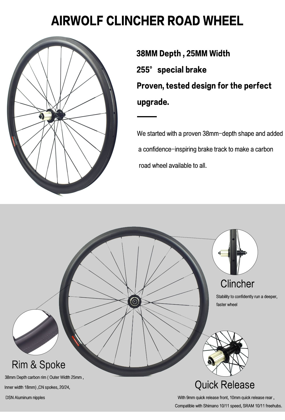 New 700C 38MM Road Bike Wheelset Ud Full Carbon Fibre Bicycle Wheelset Carbon Clincher Rims Special Rim Brake