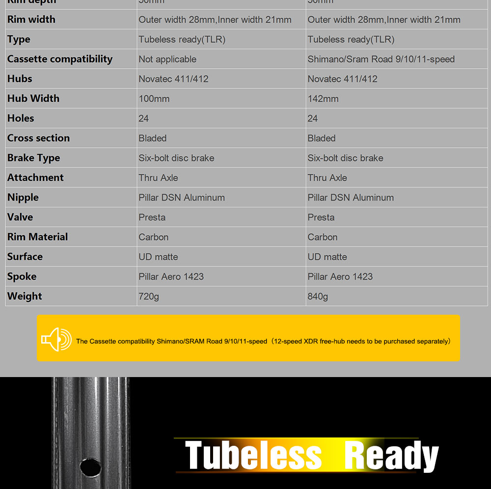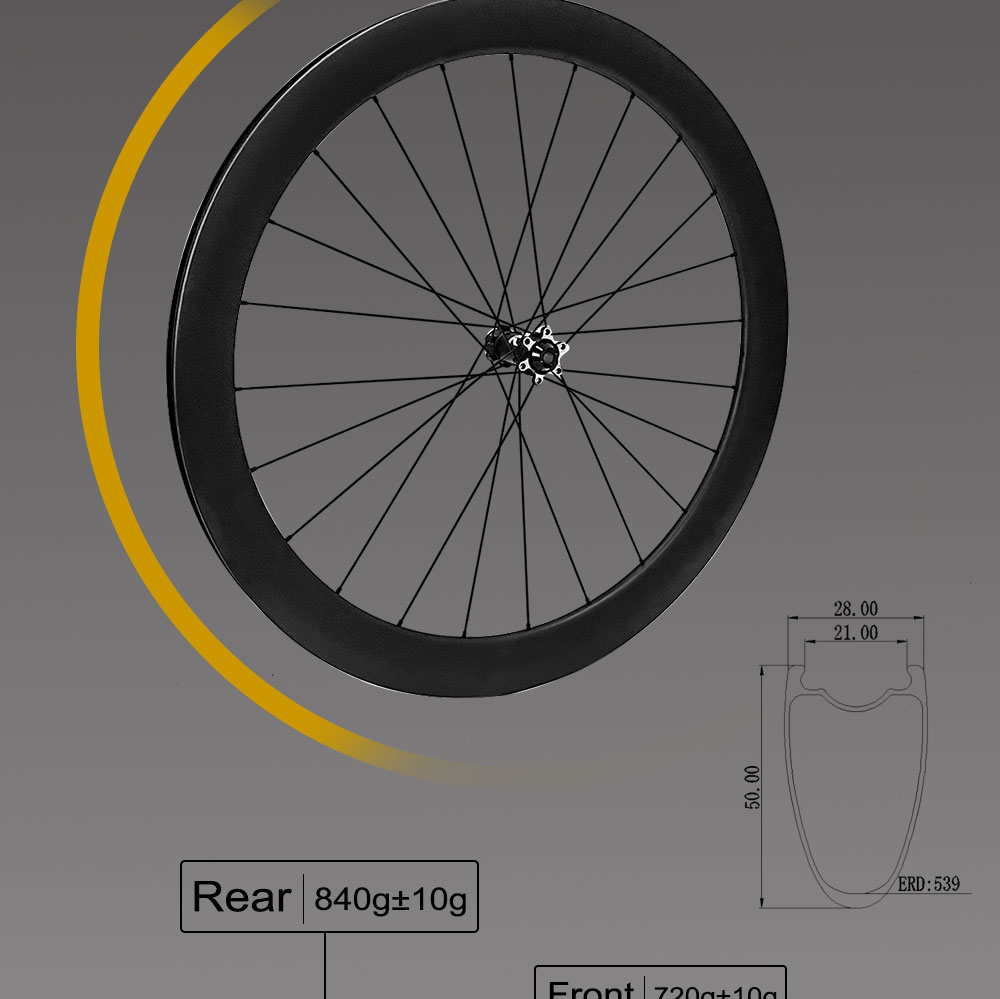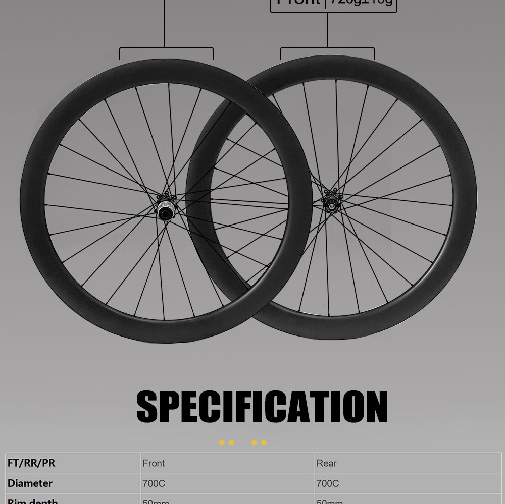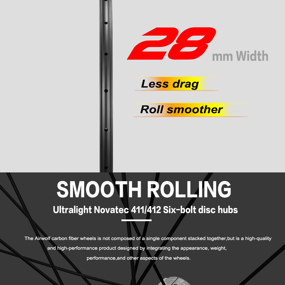 SpecificationItemsDescriptionsroduct Name:Light Version Disc Brake Carbon Road WheelsPlace of OriginGuangdong, ChinaBrand NameAirwolfModel NumberYFDW050-28MMBraking SystemDisc BrakeUseRoad BicyclesDiameter700CRim Depth50MMRim WidthOuter width 28mm,Inner width 21mmTypeTubelessHubsNovatec 411/412 six boltsSpokesPillar 1423NipplesPillar DSN AluminumHoles24-24 holesThru AxleFront :100*12mm,Rear :142*12mmFree HubsShimano HG,Sram XDRProduct DescriptionAirwolf Disc Tubeless Road Wheel 42MM Depth 24 Holes Centerlock UD Matte Carbon Fiber Steering Wheel